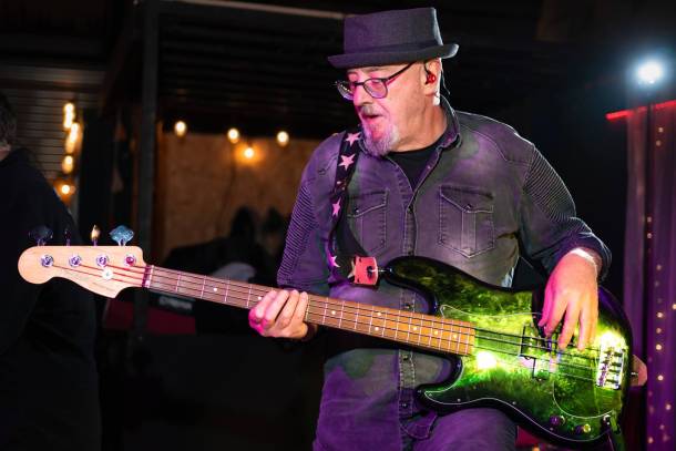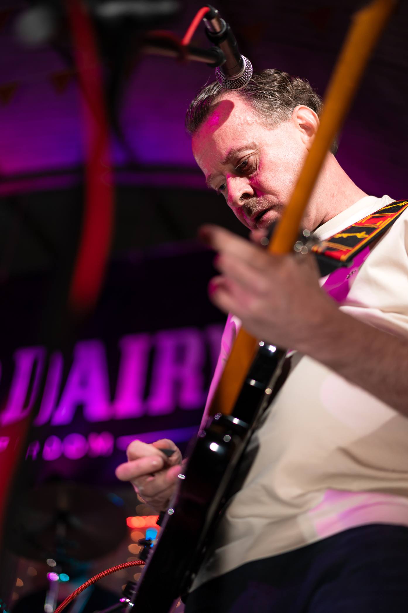 What does he do? John fills in the wall of sound and provides the funk - he plays rhythm and lead guitar for Contraband.